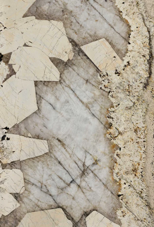 Pangea transfers the most exuberant and majestic natural stone onto large-format surfaces. The collection enhances the spaces with the union of minerals and precious stones that give way to beige granite.